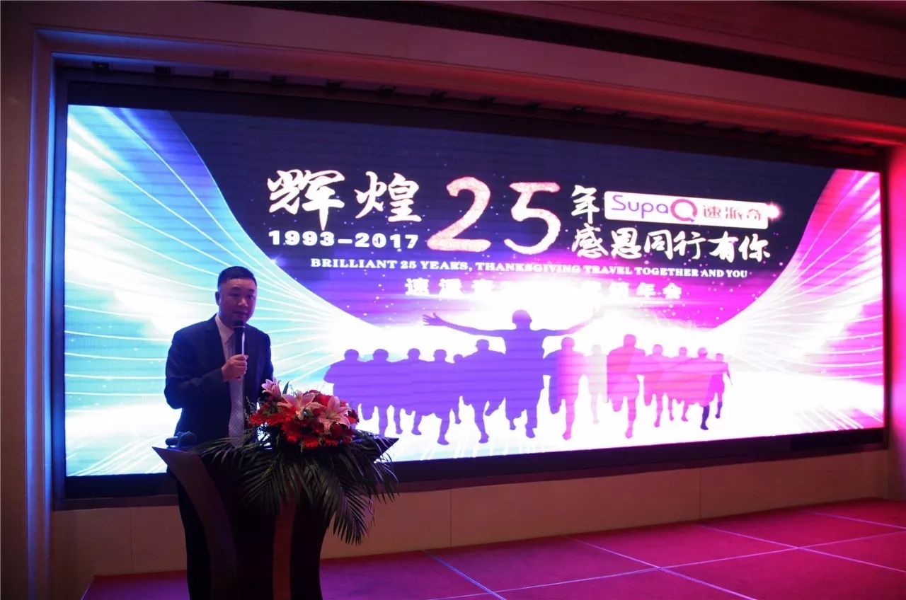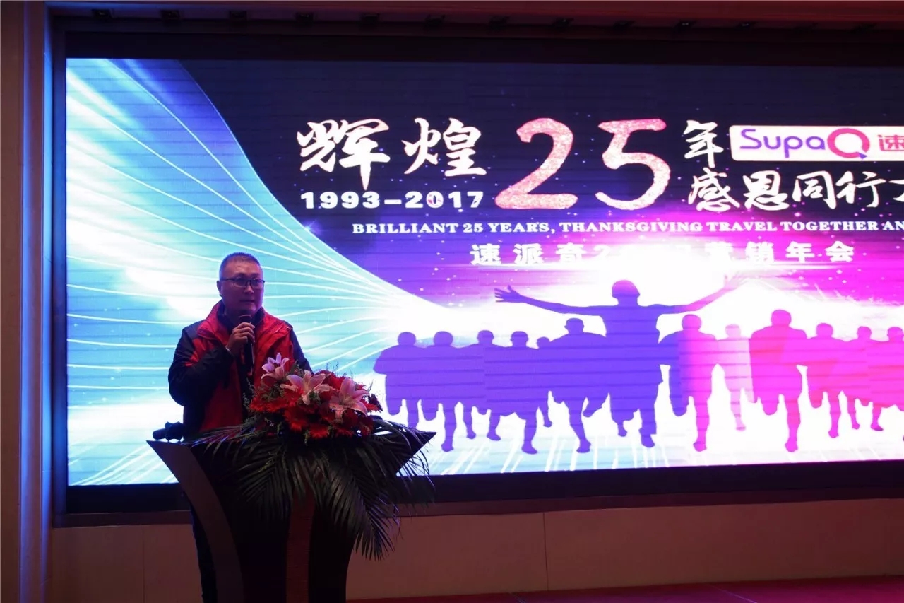 定义趋势,引领未来。2017年10月20日,速派奇2017营销峰会隆重召开,本次峰会主题“辉煌25年,感恩同行有你”,是对速派奇25年造车历史的回顾,也是企业转型升级的里程碑。速派奇车业集团董事长李董,总经理陆总,二轮车事业部总经理王总等公司领导携200余位优秀经销商精英出席,共谋发展大计。